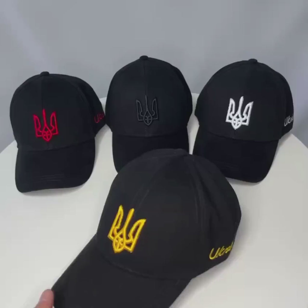Introducing the Black Ukrainian Embroidery Hat, a unique accessory that highlights your love for Ukraine. This baseball cap features a stunning 3D embroidered Coat of Arms of Ukraine in the center, symbolizing the nation's heritage and resilience. Crafted in Ukraine with exceptional skill and high-quality materials, this trident hat embodies Ukrainian pride and quality. It's perfect for individuals who appreciate Ukrainian culture and want to show their support. This embroidered hat is suitable for any occasion and makes a meaningful gift for loved ones.